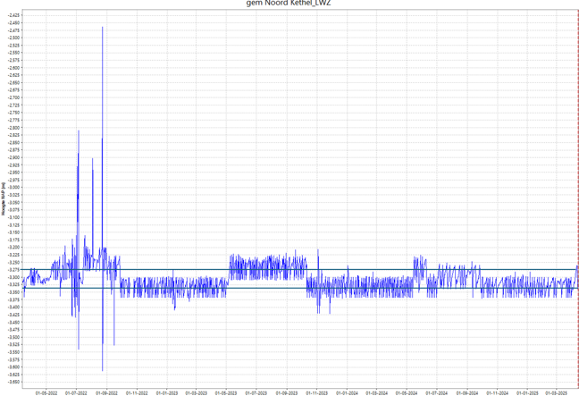 Figuur 8: meetreeks gemeten waterpeilen automatisch meetpunt gemaal Noord Kethel_LWZ