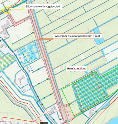 In peilgebied 18 zijn drie meetpunten, waar het gehalte aan voedingsstoffen wordt gemeten.