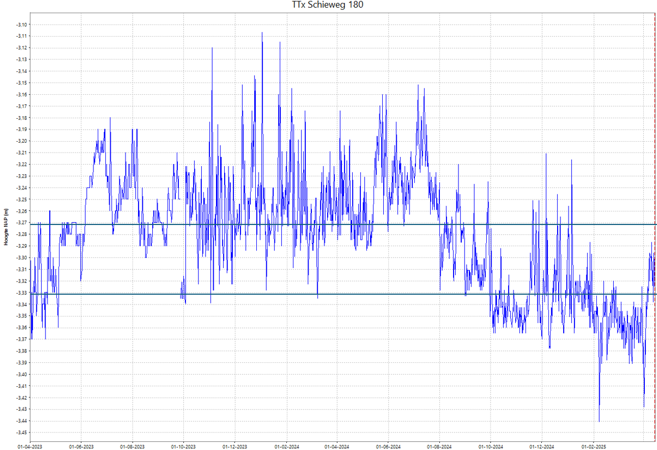 Figuur 7: meetreeks gemeten waterpeilen automatisch meetpunt TTx Schieweg 180