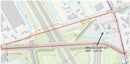 Binnen het gebied ligt ook een gebied met een afwijkend peil met een waterpeil van 1,63 meter beneden NAP (Figuur 3). In dit peilbesluit is afgewogen of het afwijkende peil kan blijven bestaan. Het gebied met afwijkend peil heeft een eigen waterinlaat vanuit naastgelegen boezemwater. Door de inlaat en meerdere stuwen kan water goed op peil gehouden worden. Het afwijkende peil in gebied PBS2025WOP4 F kan blijven bestaan.