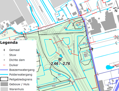 Voor dit peilgebied is een waterpeil vastgesteld van 2,66 meter beneden NAP in de zomer en 2,76 meter beneden NAP in de winter.