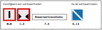 Het dagelijks bestuur van waterschap Brabantse Delta besluit om gedurende de werkzaamheden de Verkeerstekens B.8 (bord "Verplichting bijzonder op te letten"), C.3 (bord "Beperkte breedte van de doorvaart of vaarwater"), F.3 (onderbord met tekst “Baggerwerkzaamheden”) en E.11 (bord "Einde van een verbod of einde van een beperking") conform bijlage 7 van het Binnenvaartpolitiereglement, tijdelijk aan te brengen van 5 mei 2025 tot en met 31 december 2025 langs de Mark en Dintel (riviervak II en III) te Moerdijk, Breda, Etten-Leur en Halderberge, zoals hieronder aangegeven: