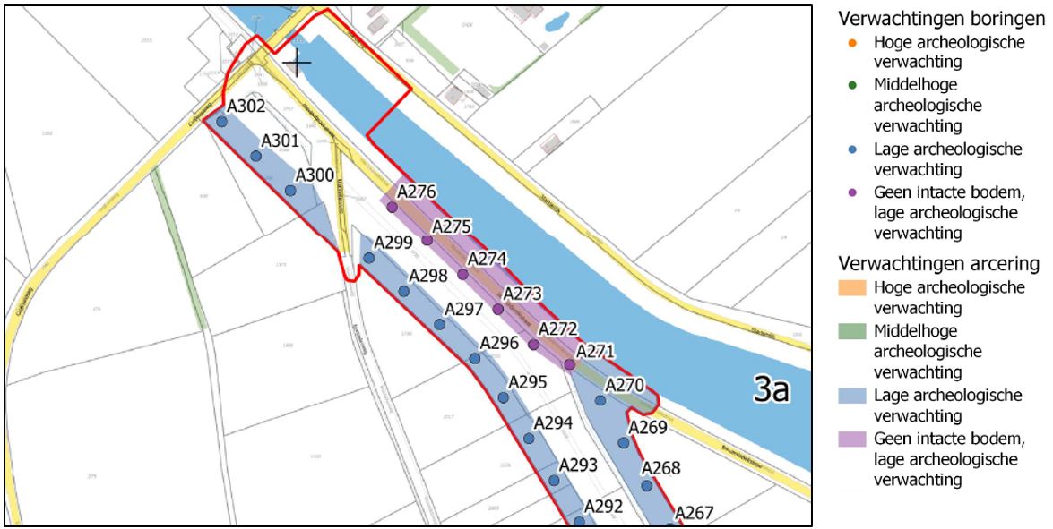 Voor het project Lob van Gennep heeft uitgebreid archeologisch onderzoek plaatsgevonden (Geonius, november 2023). Uit het bureauonderzoek blijkt dat de keersluis is gelegen in een zone met een hoge verwachtingswaarde. Uit het aanvullende veldonderzoek (IVO-O) blijkt dat er rondom de keersluis een lage archeologische verwachting is (zie ook onderstaande figuur).