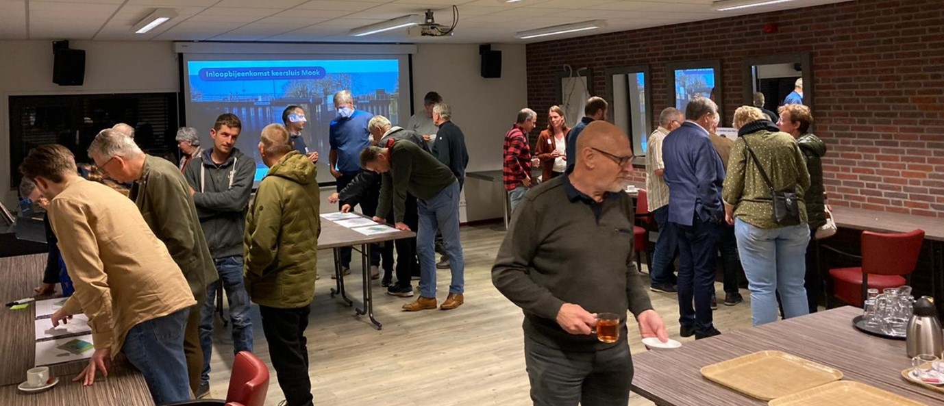 Voor het projectbesluit is een laatste inloopbijeenkomst (d.d. 11 juni 2024) georganiseerd om de omgeving te informeren over het uiteindelijke ontwerp van de keersluis en de ruimtelijke inrichting. Daarbij is ook de procedure van de terinzagelegging toegelicht.