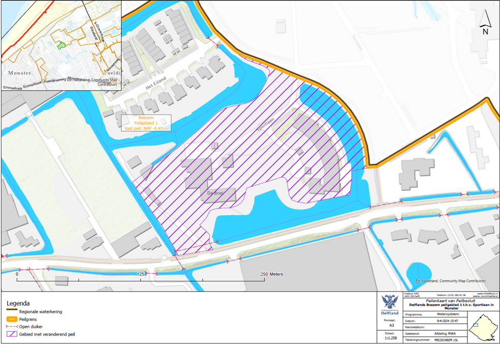 Peilbesluit Delflands Boezem, peilgebied 1 ter hoogte van Sportlaan in Monster