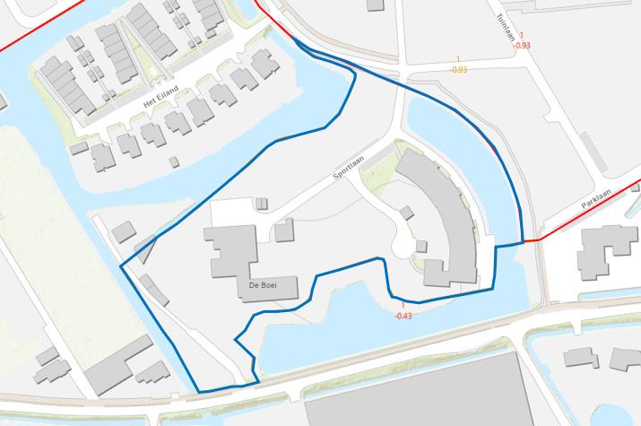 In het betreffende gebied is bebouwing aanwezig, waaronder een zwembad (De Boei) en de nieuwbouw zorgwoningen. Het zwembad is aangelegd in 1995, de overige bebouwing is recenter aangelegd. Er wordt daarom niet verwacht dat er bebouwing op houten palen aanwezig is. Daarnaast zijn er enkele wegen aanwezig en stedelijk groen.