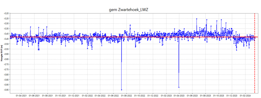 Figuur 3 Meetreeks gemeten waterpeilen meetpunt gemaal Zwartenhoek