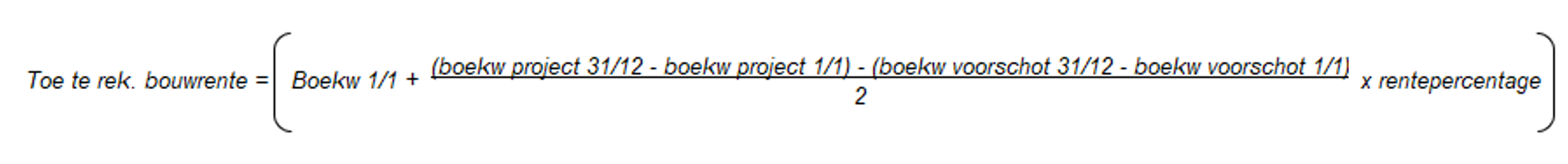De toe te rekenen bouwrente wordt als volgt berekend: