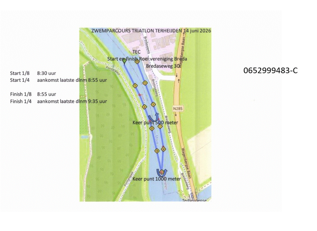 Waterschap Brabantse Delta maakt bekend dat het op 2 maart 2026 het Verkeersbesluit tijdelijke bebording evenement 42e Triatlon Terheijden 2026 heeft vastgesteld. Het dagelijks bestuur van waterschap Brabantse Delta besluit om Verkeerstekens A.1 (Verbodsteken: In-, uit- en doorvaren verboden), conform bijlage 7 van het Binnenvaartpolitiereglement, tijdelijk aan te brengen op zondag 24 juni 2026 tussen 07:00 uur en 11:30 uur langs De Mark nabij het Pontjespad te Breda, Nieuwe Bredasebaan te Breda en langs het Markkanaal zoals aangegeven in bijlage 1 bij dit besluit, zoals hieronder aangegeven: